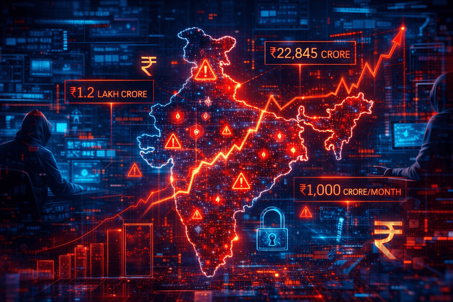 The financial toll is staggering: Rs. 22,845 crore lost to cyber fraud in 2024 (a 206% year-on-year increase), with the decade's total bank fraud losses crossing Rs. 4.69 trillion.